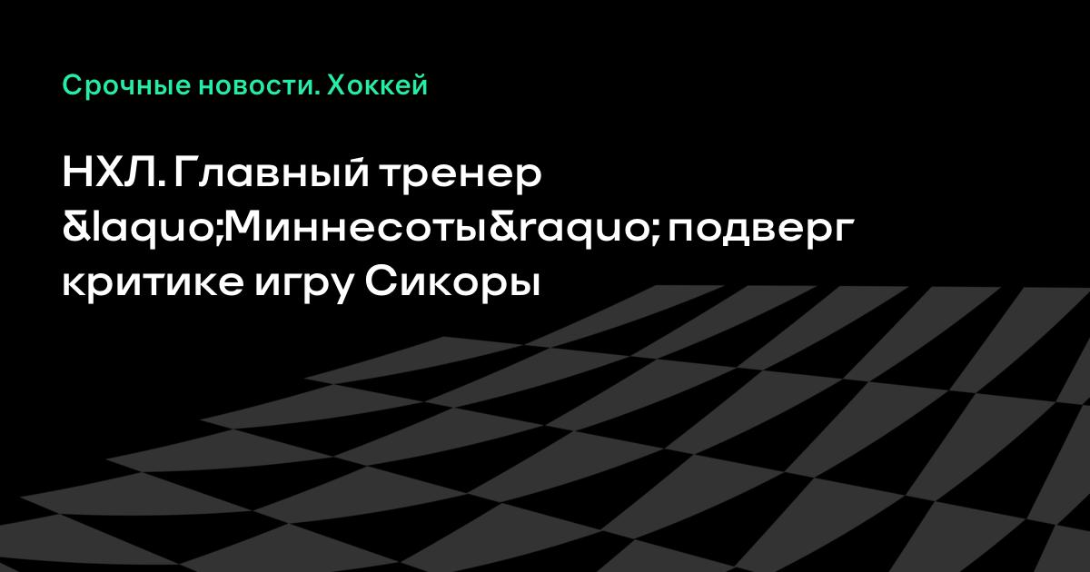 НХЛ. Главный тренер «Миннесоты» подверг критике игру Сикоры