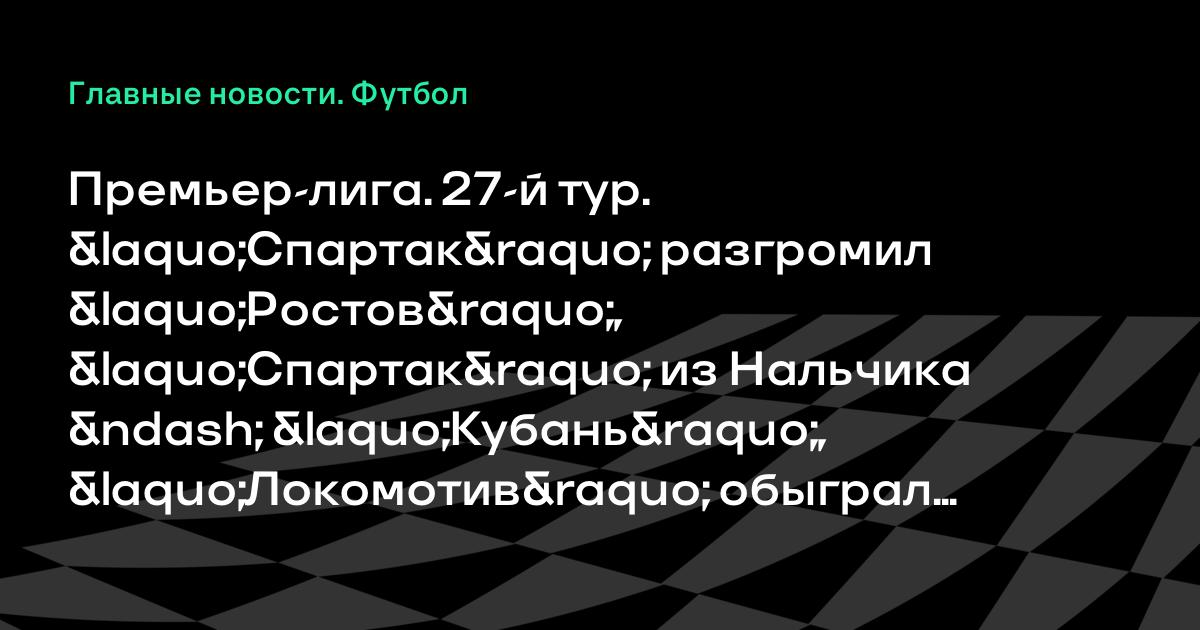 Премьер-лига. 27-й тур. «Спартак» разгромил «Ростов», «Спартак» из Нальчика – «Кубань», «Локомотив» обыграл «Томь» и другие результаты