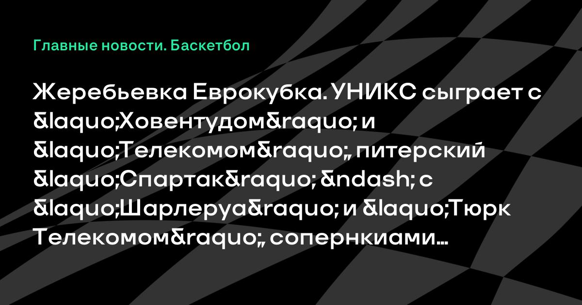 Жеребьевка Еврокубка. УНИКС сыграет с «Ховентудом» и «Телекомом», питерский «Спартак» – с «Шарлеруа» и «Тюрк Телекомом», сопернкиами «Триумфа» будут «Ле-Ман» и «Валенсия», «Динамо» – «Бенеттон» и «Шоле»