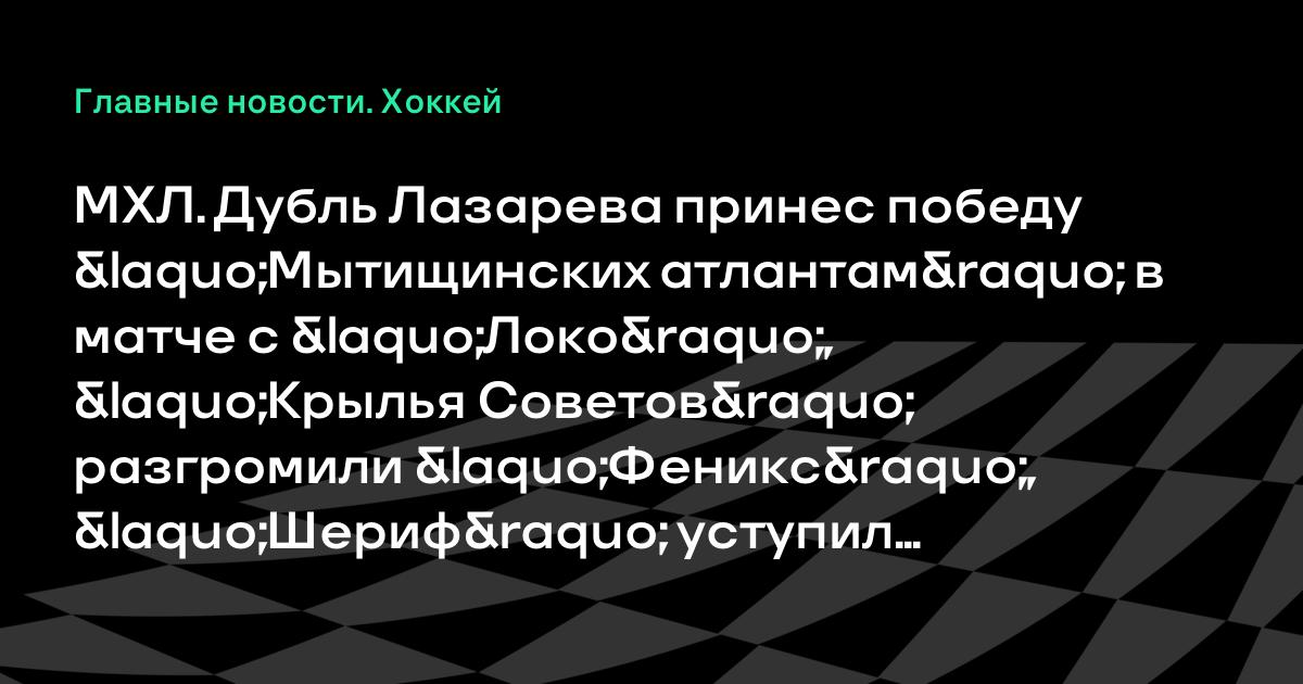 МХЛ. Дубль Лазарева принес победу «Мытищинских атлантам» в матче с «Локо», «Крылья Советов» разгромили «Феникс», «Шериф» уступил «Чайке»