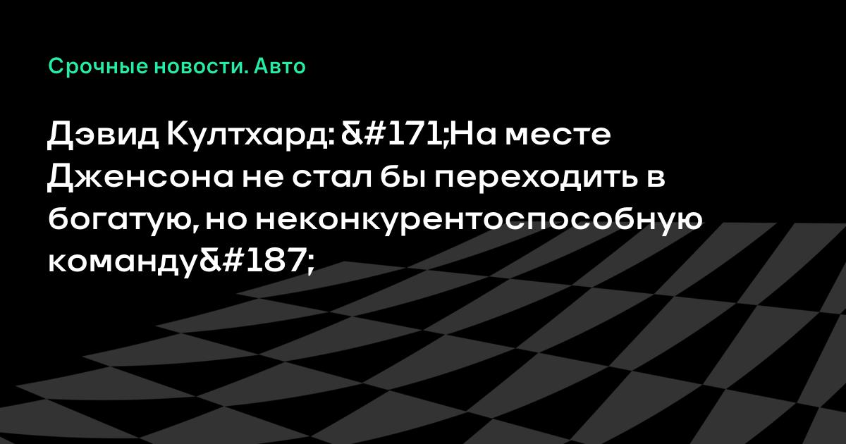 Дэвид Култхард: «На месте Дженсона не стал бы переходить в богатую, но неконкурентоспособную команду»
