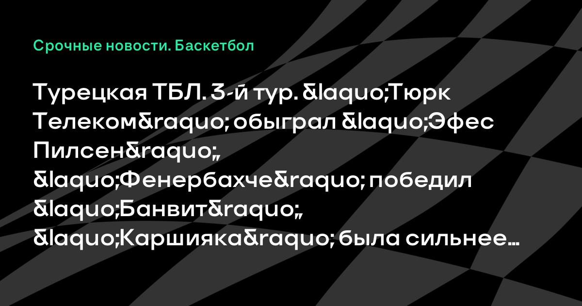 Турецкая ТБЛ. 3-й тур. «Тюрк Телеком» обыграл «Эфес Пилсен», «Фенербахче» победил «Банвит», «Каршияка» была сильнее «Кепеза» и другие результаты
