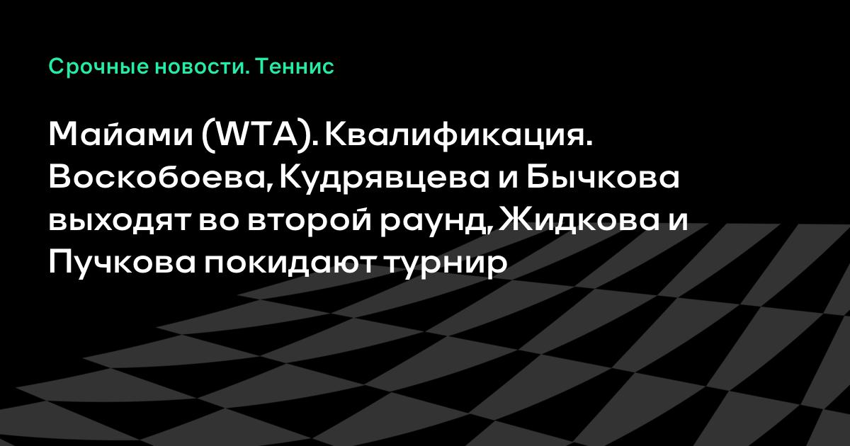 Майами (WTA). Квалификация. Воскобоева, Кудрявцева и Бычкова выходят во второй раунд, Жидкова и Пучкова покидают турнир