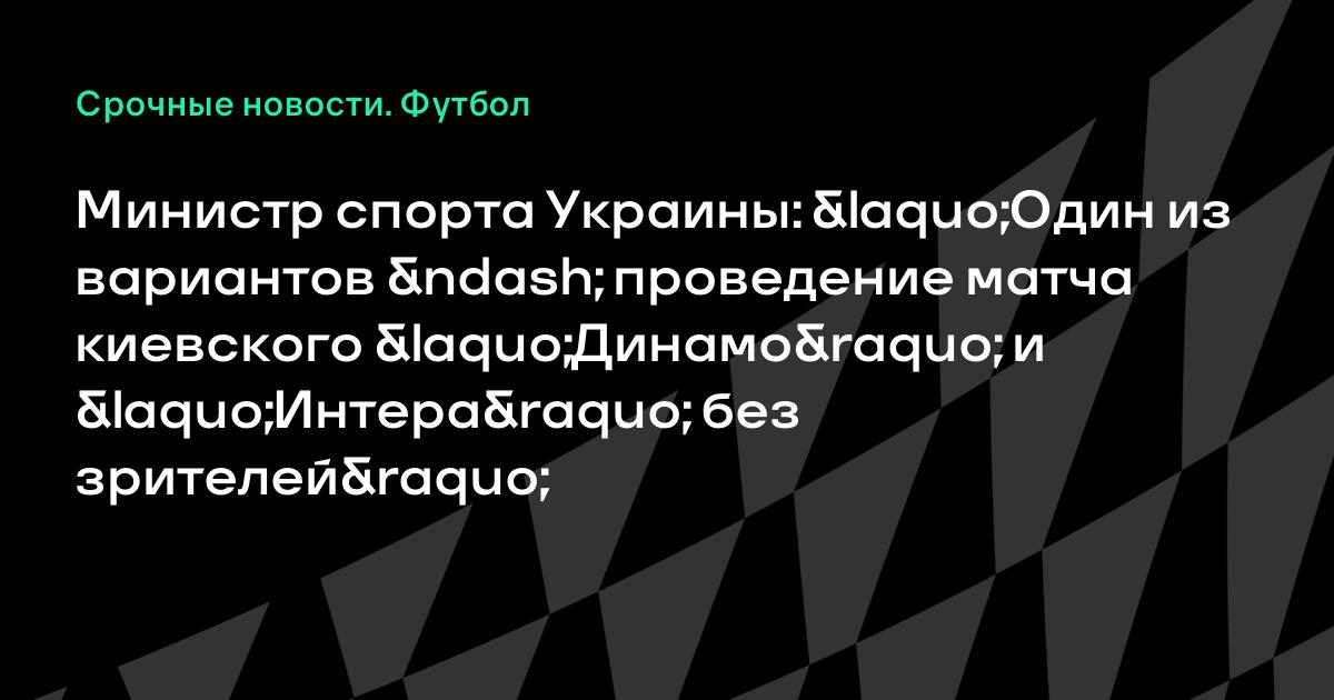 Министр спорта Украины: «Один из вариантов – проведение матча киевского «Динамо» и «Интера» без зрителей»
