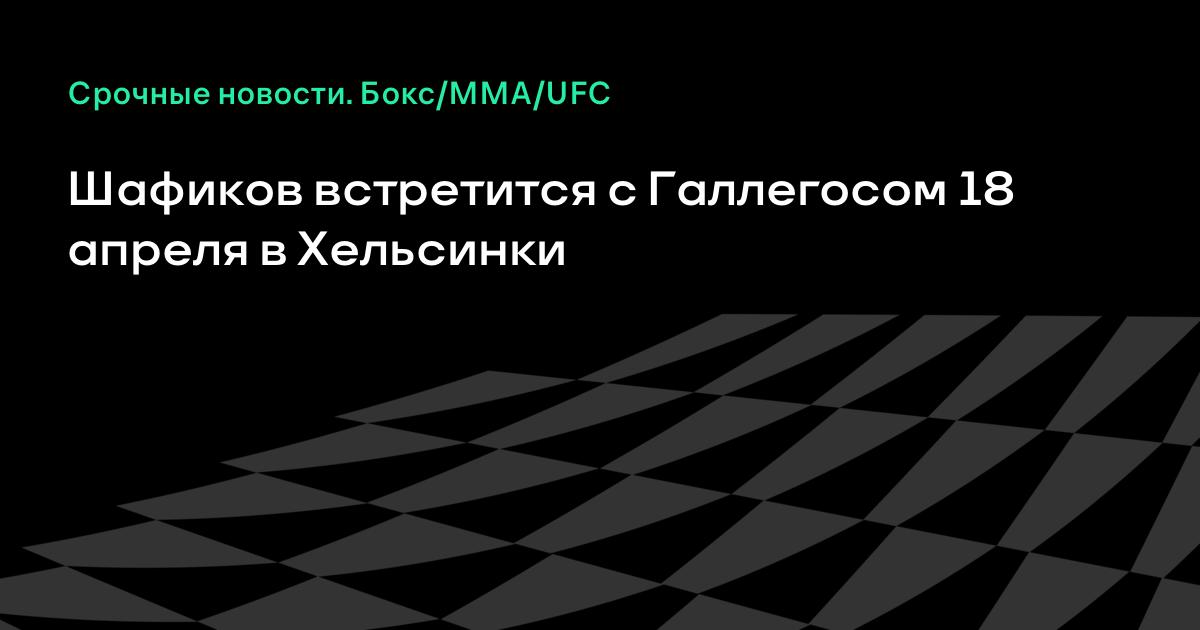 Перспективный российский средневес Денис Шафиков (14-0, 8 КО) 18 апреля в столице Финляндии проведет 10-раундовый рейтинговый поединок против американца Шона Галлегоса (16-3, 5 КО).