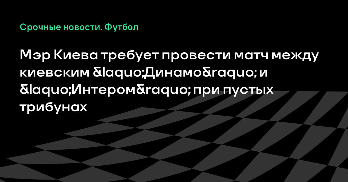 Мэр Киева требует провести матч между киевским «Динамо» и «Интером» при пустых трибунах