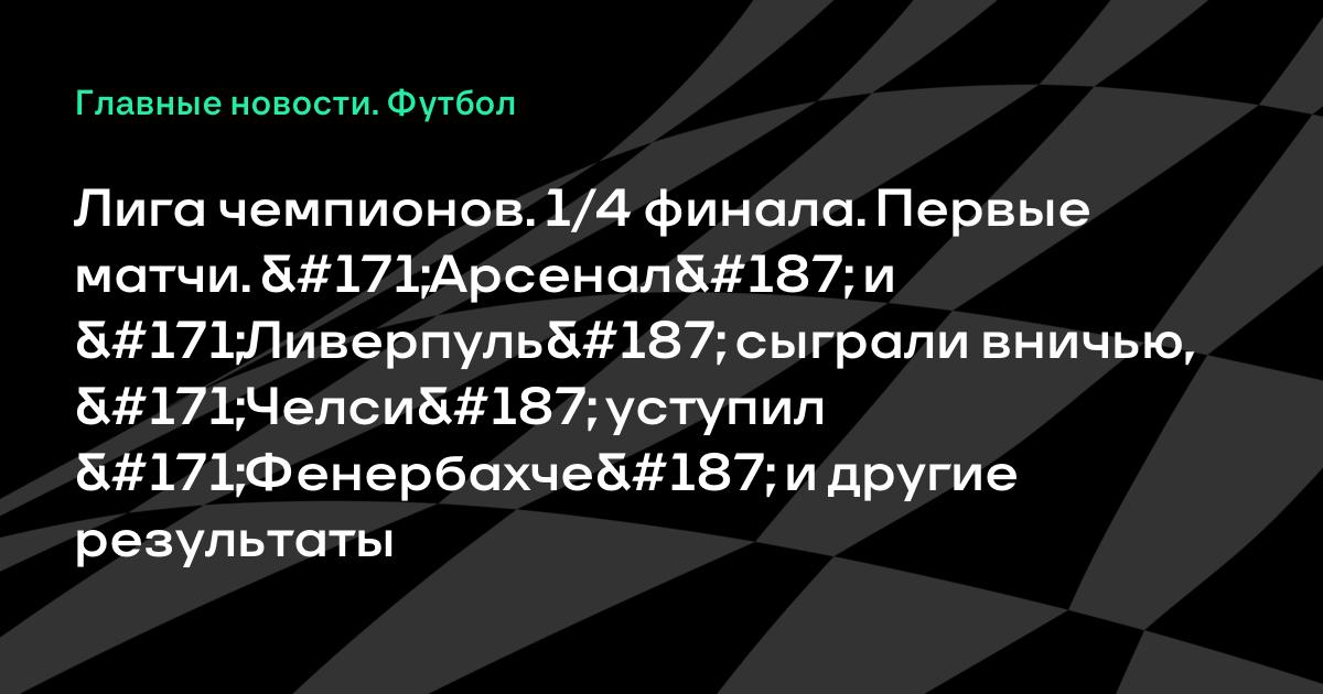 Лига чемпионов. 1/4 финала. Первые матчи. «Арсенал» и «Ливерпуль» сыграли вничью, «Челси» уступил «Фенербахче» и другие результаты