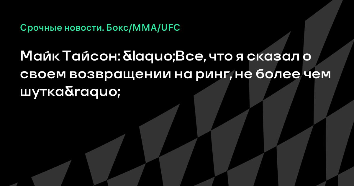 «Все, что я сказал о своем возвращении на ринг, не более чем шутка. Мне 43 года и я не собираюсь возвращаться на ринг. У меня есть лишний вес, и я не горю желанием его сбрасывать, а вы хотите, чтобы я выходил на ринг. Мне это просто уже не нужно. Мое время прошло», цитирует Тайсона Sky News.
