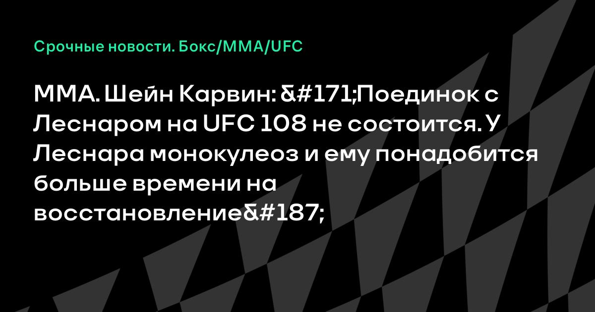 MMA. Шейн Карвин: «Поединок с Леснаром на UFC 108 не состоится. У Леснара монокулеоз и ему понадобится больше времени на восстановление»