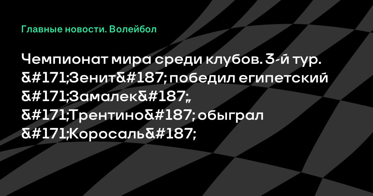 Чемпионат мира среди клубов. 3-й тур. «Зенит» победил египетский «Замалек», «Трентино» обыграл «Коросаль»