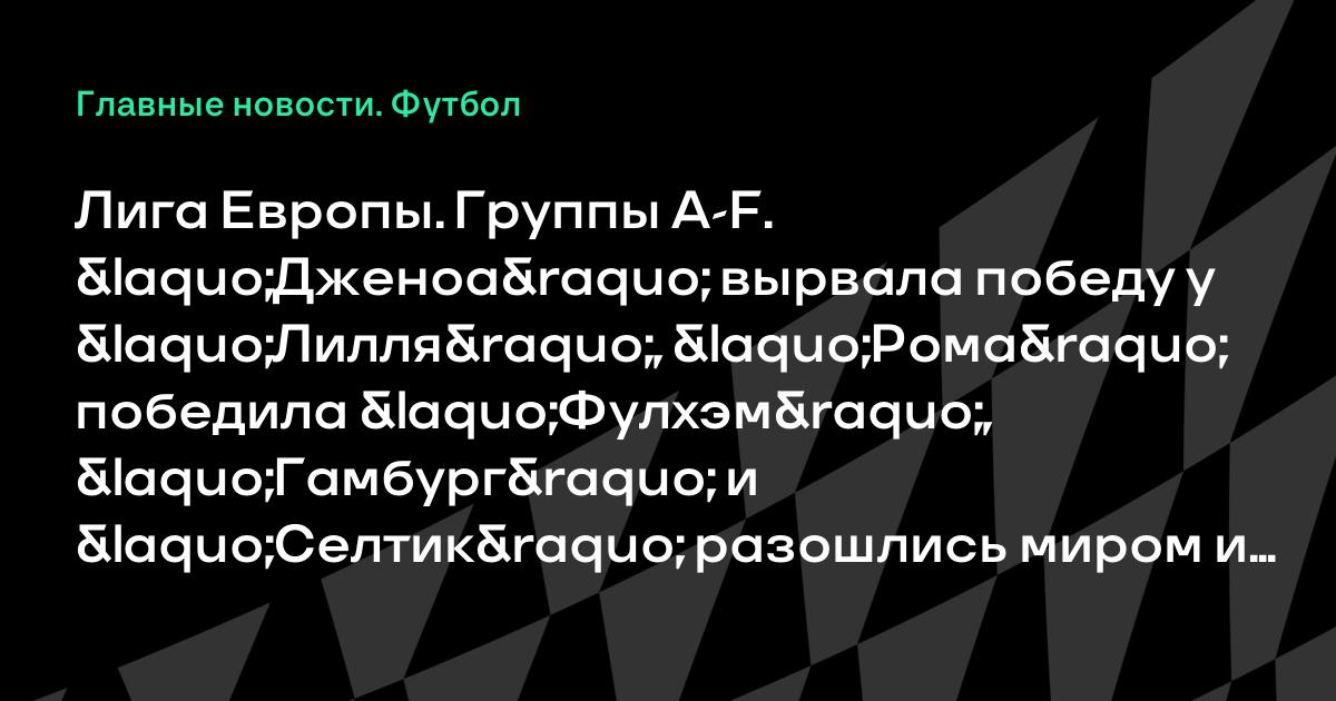 Лига Европы. Группы A-F. «Дженоа» вырвала победу у «Лилля», «Рома» победила «Фулхэм», «Гамбург» и «Селтик» разошлись миром и другие результаты