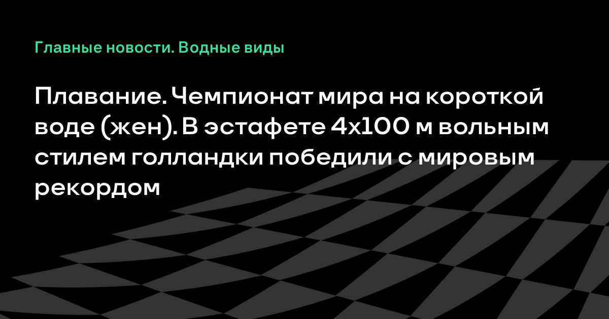 Плавание. Чемпионат мира на короткой воде (жен). В эстафете 4х100 м вольным стилем голландки победили с мировым рекордом