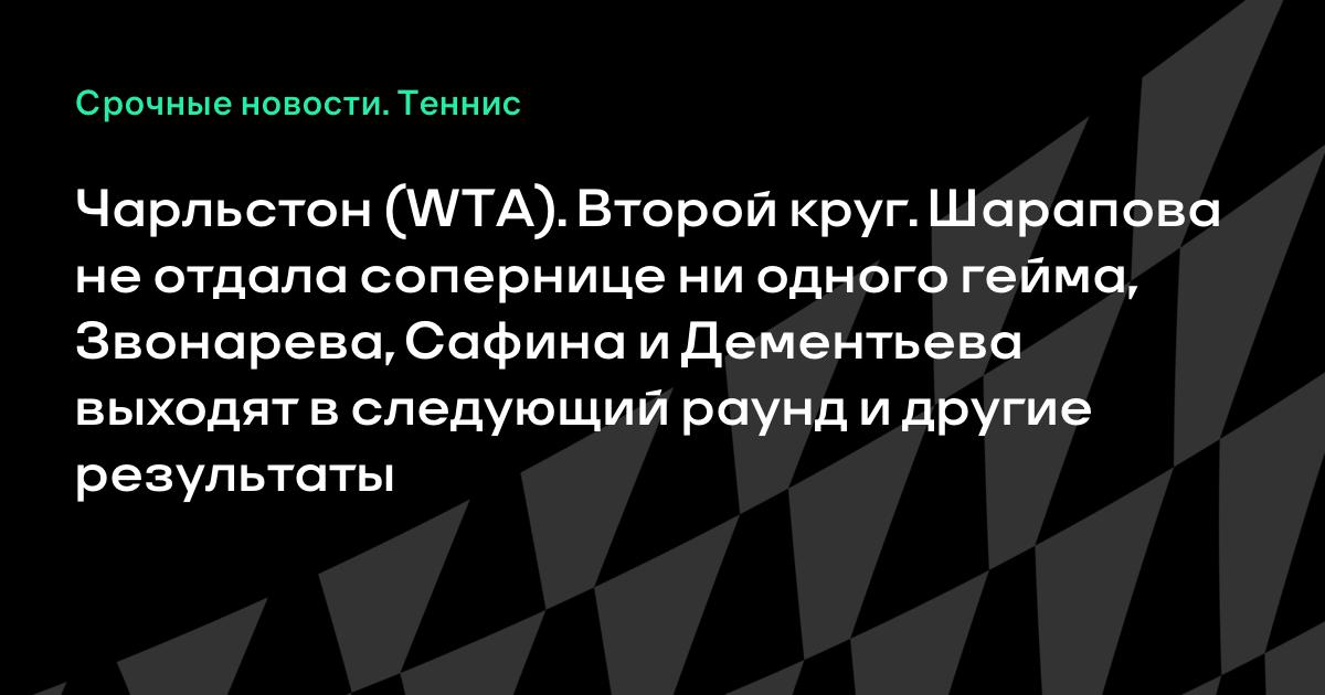 Чарльстон (WTA). Второй круг. Шарапова не отдала сопернице ни одного гейма, Звонарева, Сафина и Дементьева выходят в следующий раунд и другие результаты