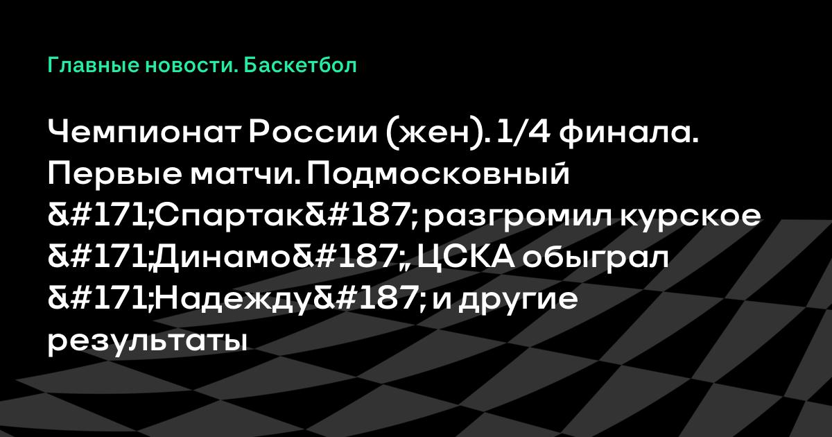 Чемпионат России (жен). 1/4 финала. Первые матчи. Подмосковный «Спартак» разгромил курское «Динамо», ЦСКА обыграл «Надежду» и другие результаты