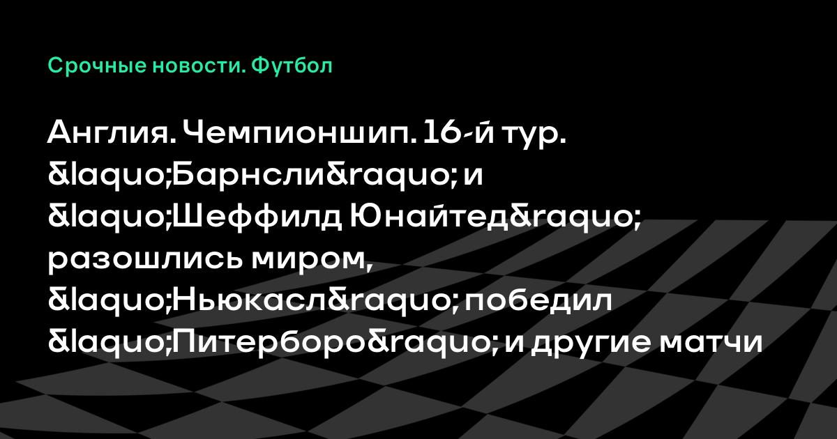 Англия. Чемпионшип. 16-й тур. «Барнсли» и «Шеффилд Юнайтед» разошлись миром, «Ньюкасл» победил «Питерборо» и другие матчи