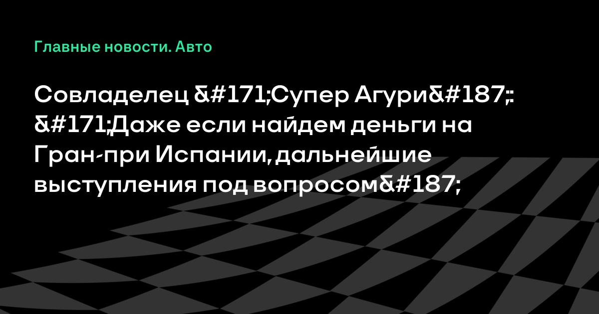 Совладелец «Супер Агури»: «Даже если найдем деньги на Гран-при Испании, дальнейшие выступления под вопросом»