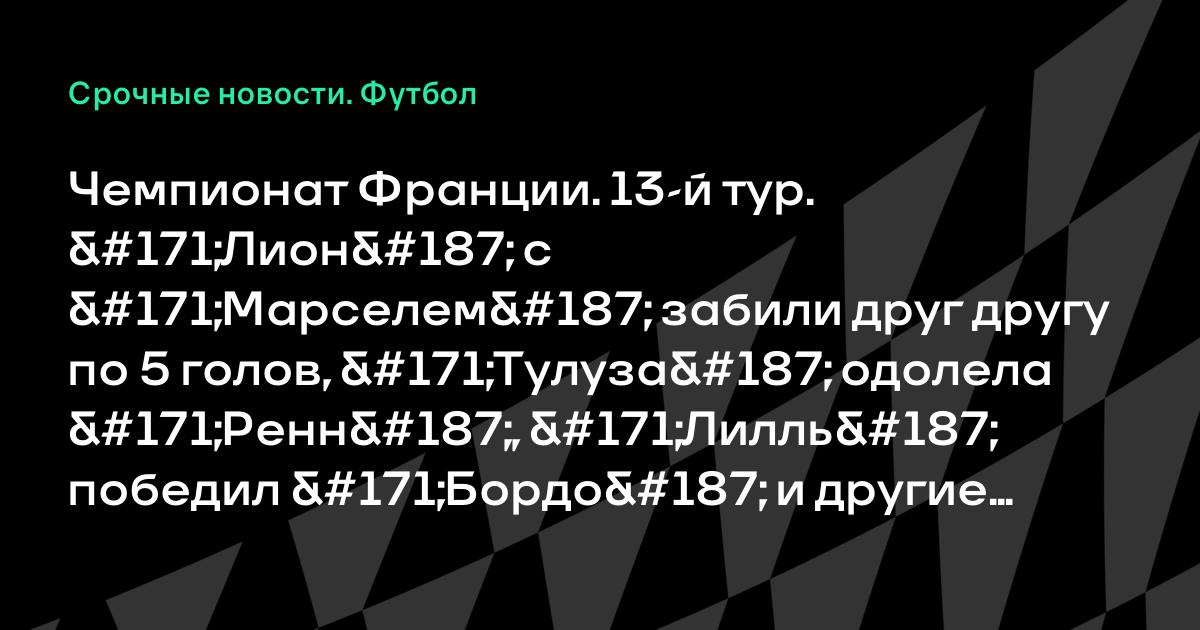 Чемпионат Франции. 13-й тур. «Лион» с «Марселем» забили друг другу по 5 голов, «Тулуза» одолела «Ренн», «Лилль» победил «Бордо» и другие результаты