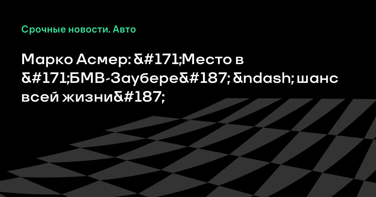Марко Асмер: «Место в «БМВ-Заубере» – шанс всей жизни»