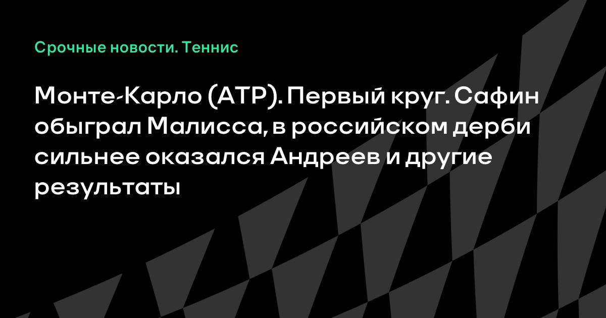 Монте-Карло (ATP). Первый круг. Сафин обыграл Малисса, в российском дерби сильнее оказался Андреев и другие результаты
