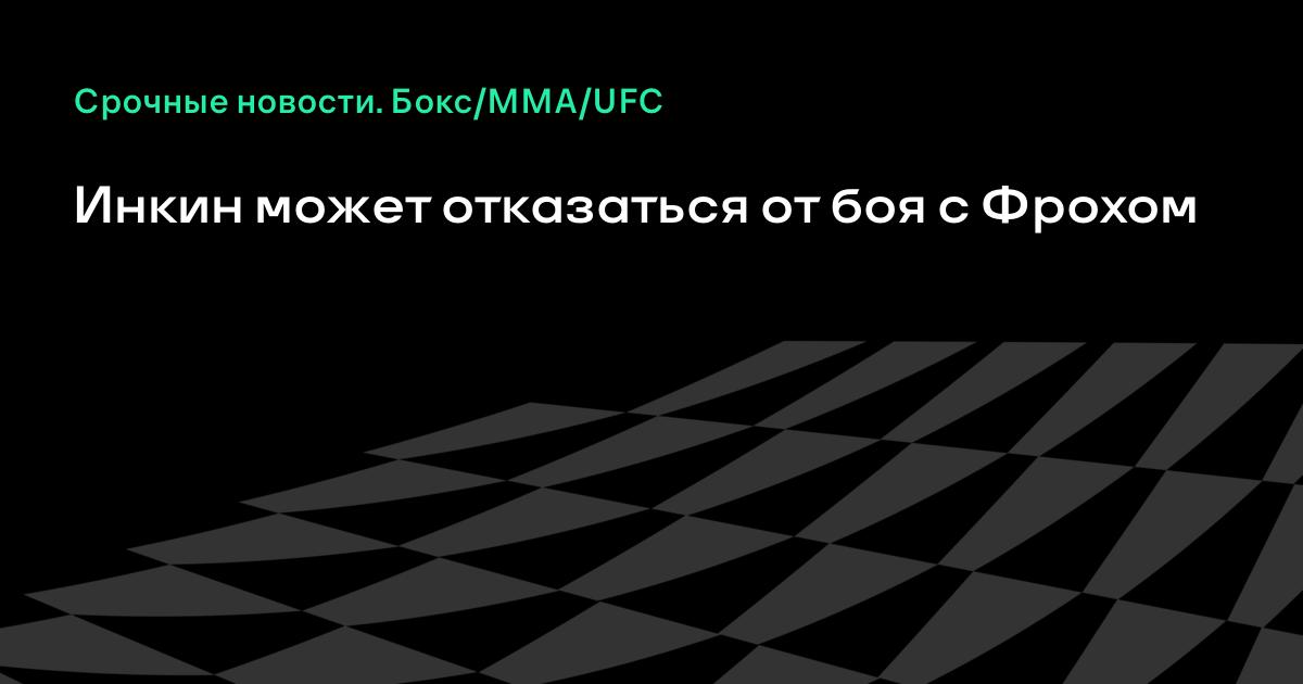 Как стало известно из источников в штабе организаторов, россиянин Денис Инкин, возможно, откажется от поединка за звание обязательного претендента на титул чемпиона мира по версии WBC во втором среднем весе с британцем Карлом Фрохом, который запланирован на 10 мая в Ноттингеме (Англия).