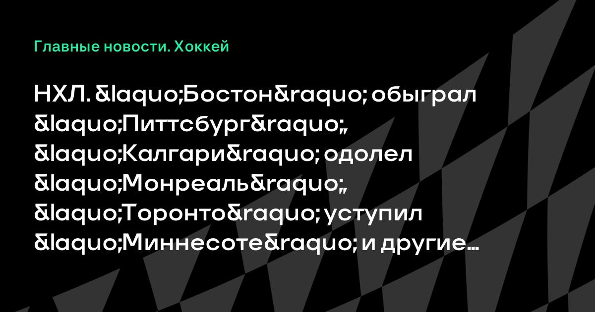 НХЛ. «Бостон» обыграл «Питтсбург», «Калгари» одолел «Монреаль», «Торонто» уступил «Миннесоте» и другие результаты