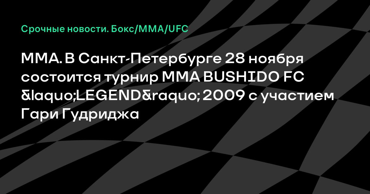MMA. В Санкт-Петербурге 28 ноября состоится турнир MMA BUSHIDO FC «LEGEND» 2009 с участием Гари Гудриджа