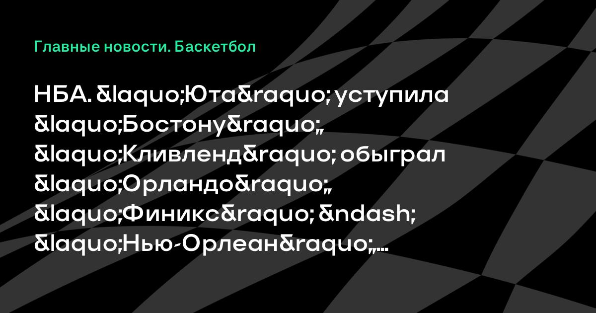 НБА. «Юта» уступила «Бостону», «Кливленд» обыграл «Орландо», «Финикс» – «Нью-Орлеан», «Даллас» проиграл «Сан-Антонио» и другие результаты
