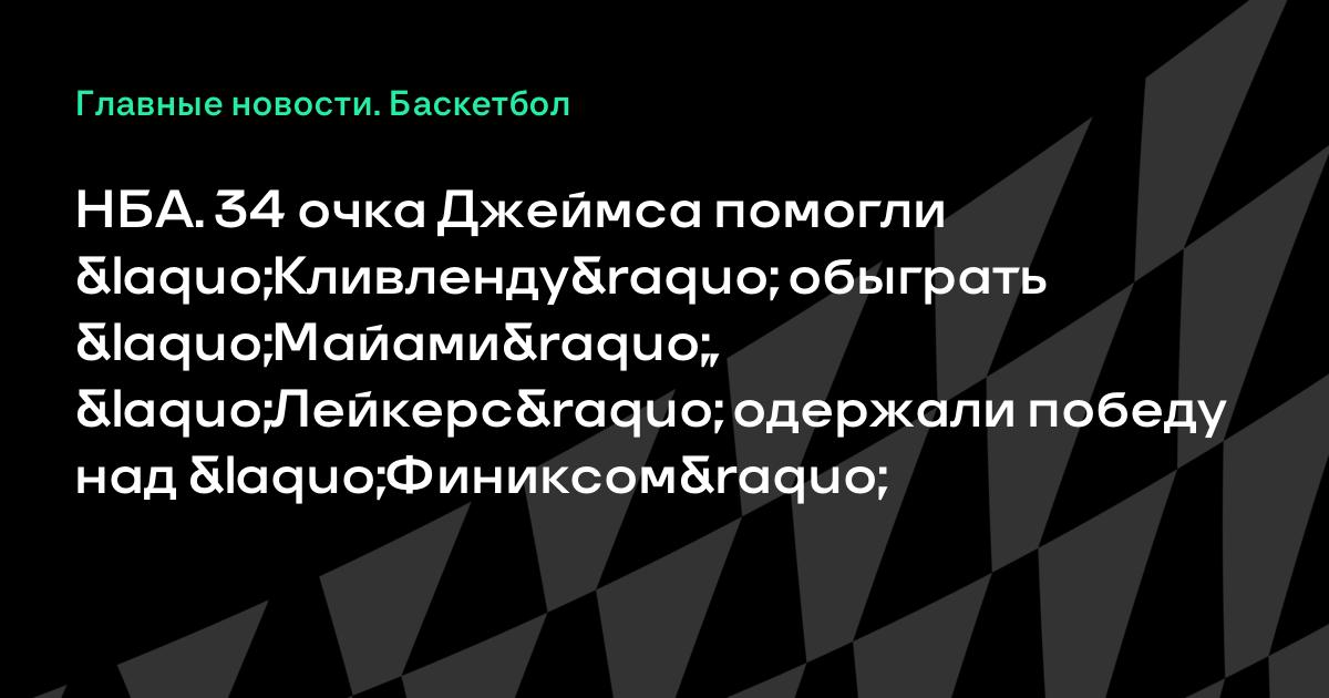 НБА. 34 очка Джеймса помогли «Кливленду» обыграть «Майами», «Лейкерс» одержали победу над «Финиксом»