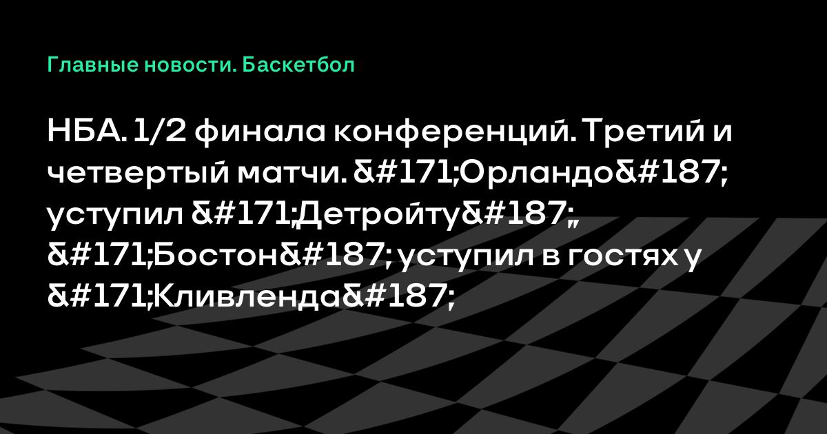 НБА. 1/2 финала конференций. Третий и четвертый матчи. «Орландо» уступил «Детройту», «Бостон» уступил в гостях у «Кливленда»