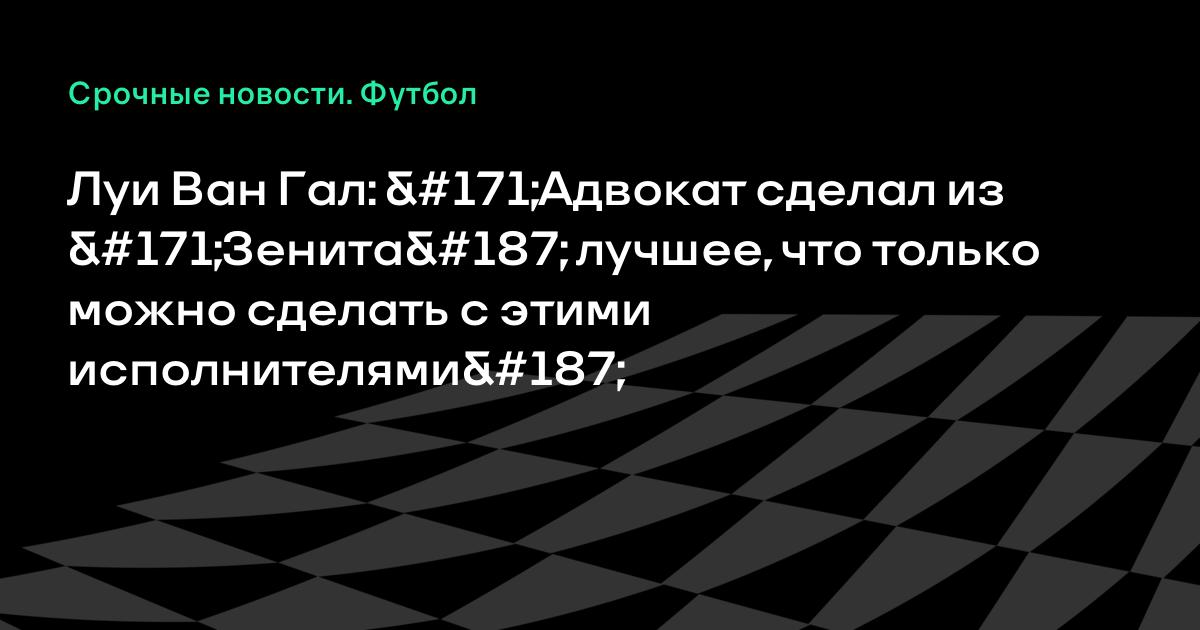 Луи Ван Гал: «Адвокат сделал из «Зенита» лучшее, что только можно сделать с этими исполнителями»