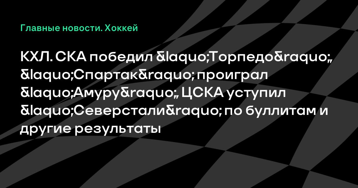 КХЛ. СКА победил «Торпедо», «Спартак» проиграл «Амуру», ЦСКА уступил «Северстали» по буллитам и другие результаты