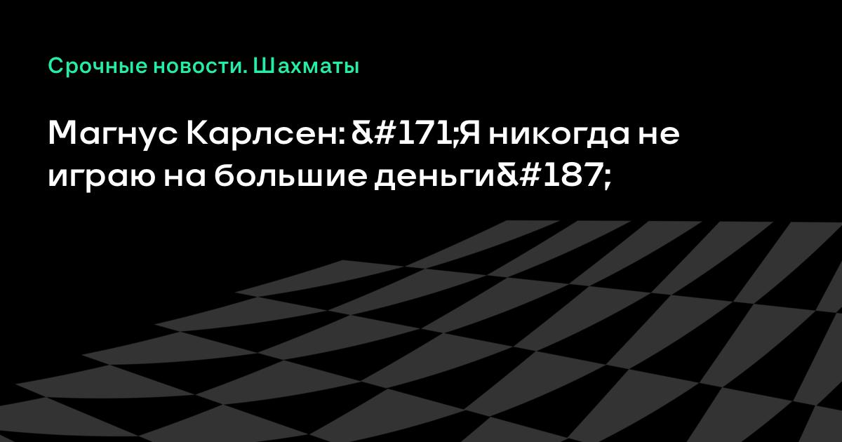 Магнус Карлсен: «Я никогда не играю на большие деньги»