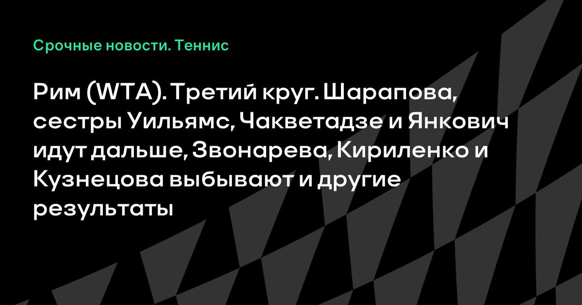 Рим (WTA). Третий круг. Шарапова, сестры Уильямс, Чакветадзе и Янкович идут дальше, Звонарева, Кириленко и Кузнецова выбывают и другие результаты