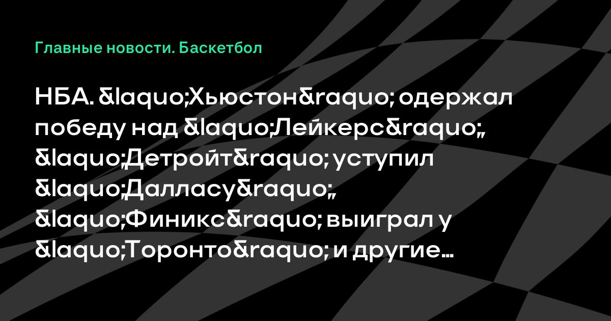 НБА. «Хьюстон» одержал победу над «Лейкерс», «Детройт» уступил «Далласу», «Финикс» выиграл у «Торонто» и другие результаты