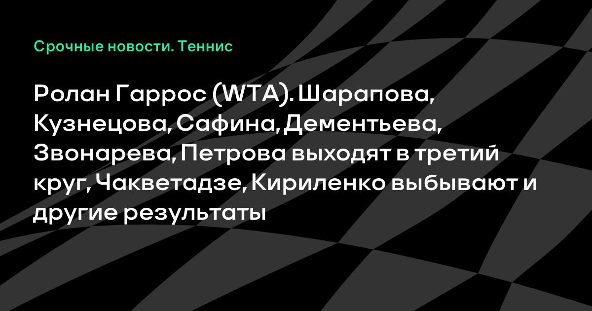 Ролан Гаррос (WTA). Шарапова, Кузнецова, Сафина, Дементьева, Звонарева, Петрова выходят в третий круг, Чакветадзе, Кириленко выбывают и другие результаты