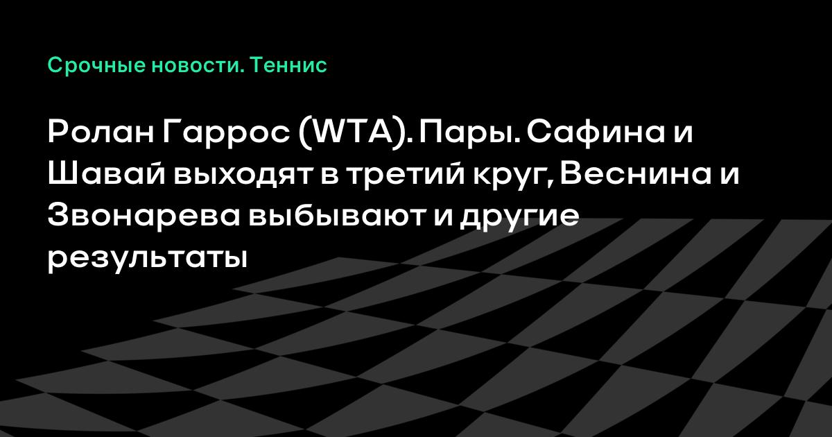 Ролан Гаррос (WTA). Пары. Сафина и Шавай выходят в третий круг, Веснина и Звонарева выбывают и другие результаты