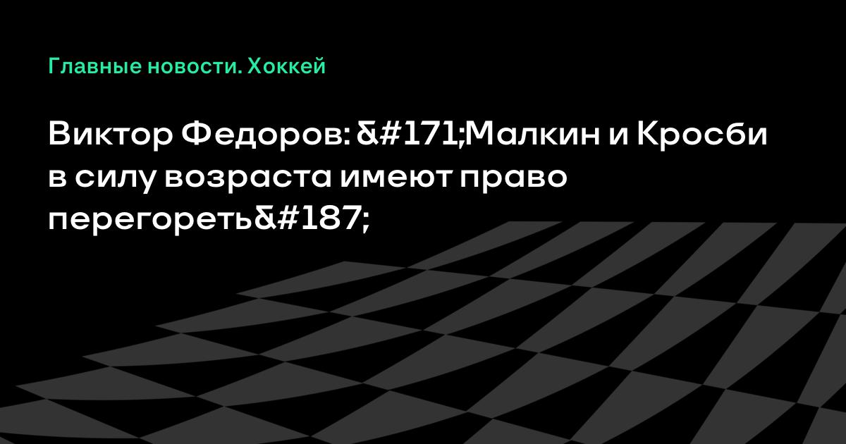 В то же время тех же Малкина и Кросби можно взять под защиту. Они впервые дошли до такой стадии и, наверное, в силу возраста имеют право перегореть», приводит слвоа Федорова-старшего «Спорт-Экспресс».