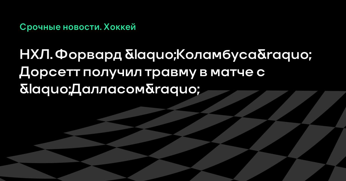 Нападающий «Коламбуса» Дерек Дорсетт получил травму в матче регулярного чемпионата НХЛ с «Далласом» (4:1). В первом периоде его грубо толкнул на борт форвард «Старс» Джеймс Нил. Дорсетт покинул площадку и больше на лед не выходил, информирует CP.