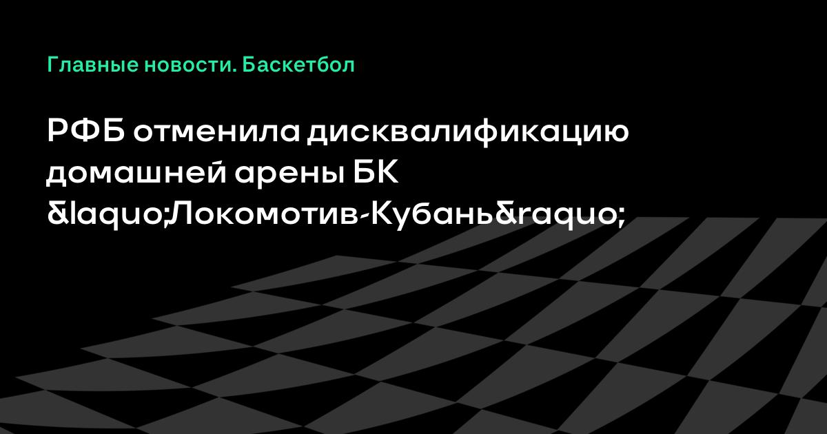 «Локомотив-Кубань» сможет провести ответный матч 3-го раунда 1/4 финала Кубка России против «Сибирьтелекома-Локомотива» на домашней площадке. Это стало известно после того, как исполком РФБ частично удовлетворил апелляцию клуба на решение Директората наказать краснодарцев за инцидент после матча суперлиги между «Локомотивом» и «Динамо». Дисквалификация арены отменена, но клубу придется заплатить штраф в размере 105 000 рублей.