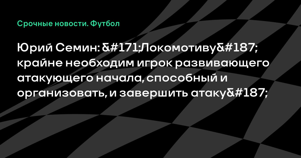 Юрий Семин: «Локомотиву» крайне необходим игрок развивающего атакующего начала, способный и организовать, и завершить атаку»
