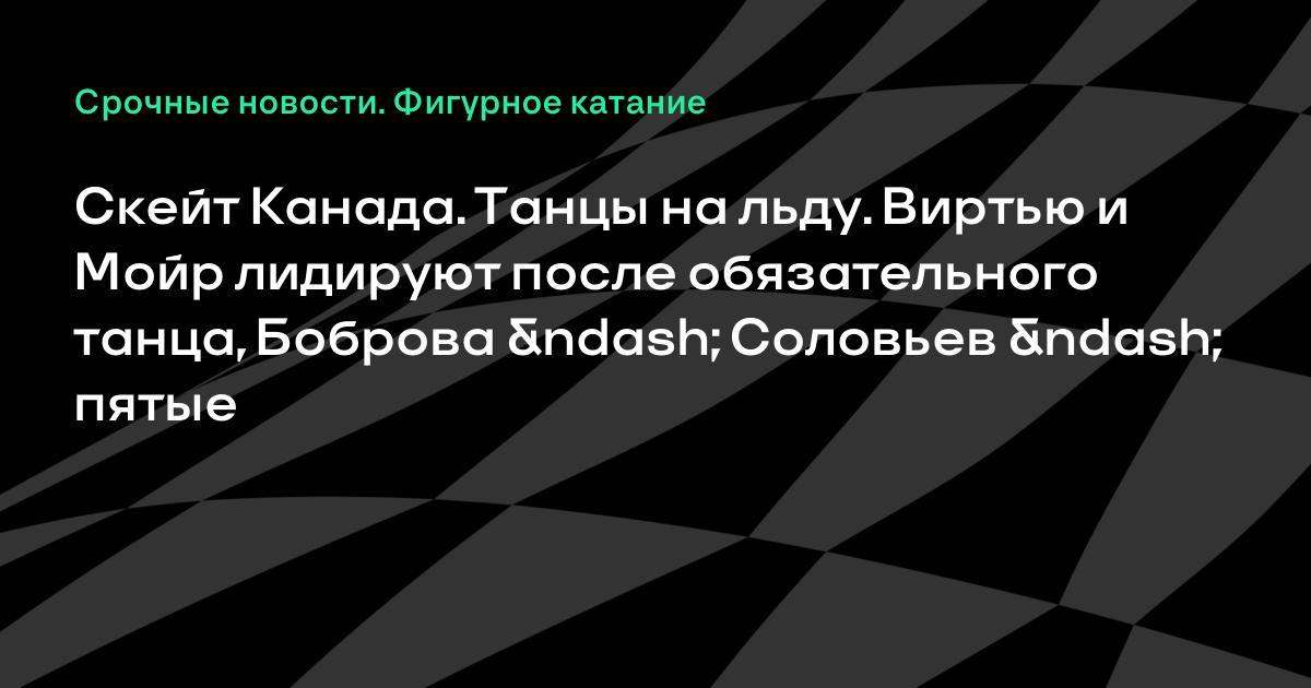 Скейт Канада. Танцы на льду. Виртью и Мойр лидируют после обязательного танца, Боброва – Соловьев – пятые