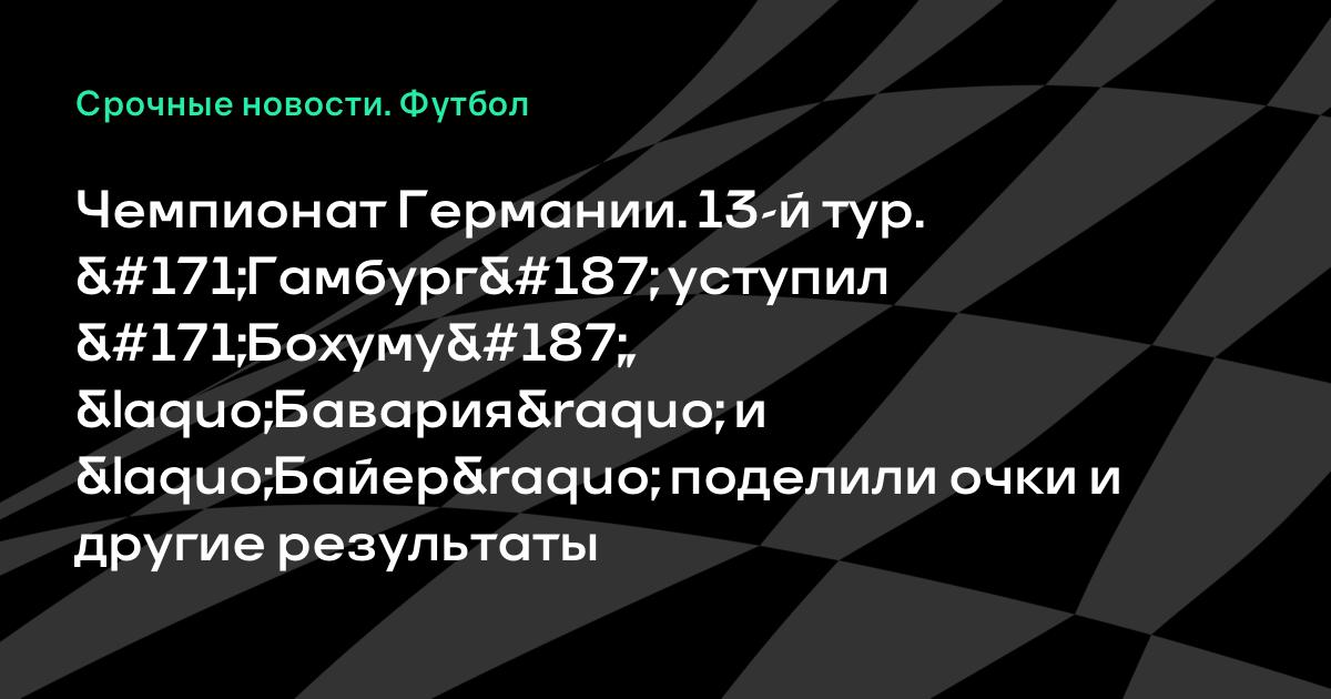 Чемпионат Германии. 13-й тур. «Гамбург» уступил «Бохуму», «Бавария» и «Байер» поделили очки и другие результаты