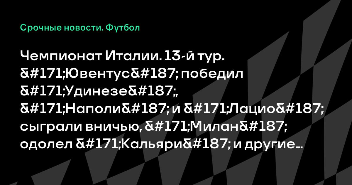 Чемпионат Италии. 13-й тур. «Ювентус» победил «Удинезе», «Наполи» и «Лацио» сыграли вничью, «Милан» одолел «Кальяри» и другие результаты