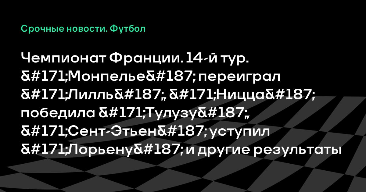 Чемпионат Франции. 14-й тур. «Монпелье» переиграл «Лилль», «Ницца» победила «Тулузу», «Сент-Этьен» уступил «Лорьену» и другие результаты