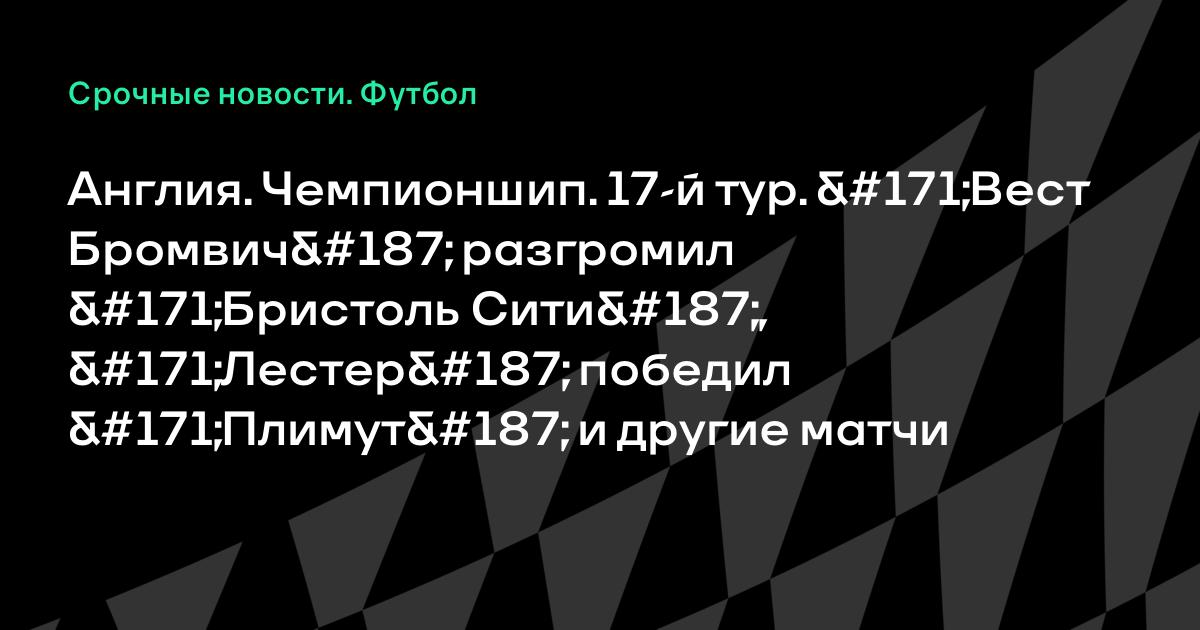 Англия. Чемпионшип. 17-й тур. «Вест Бромвич» разгромил «Бристоль Сити», «Лестер» победил «Плимут» и другие матчи