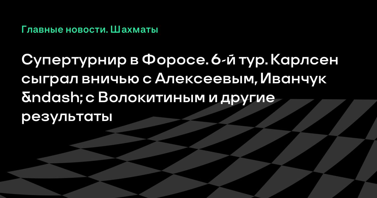 Супертурнир в Форосе. 6-й тур. Карлсен сыграл вничью с Алексеевым, Иванчук – с Волокитиным и другие результаты