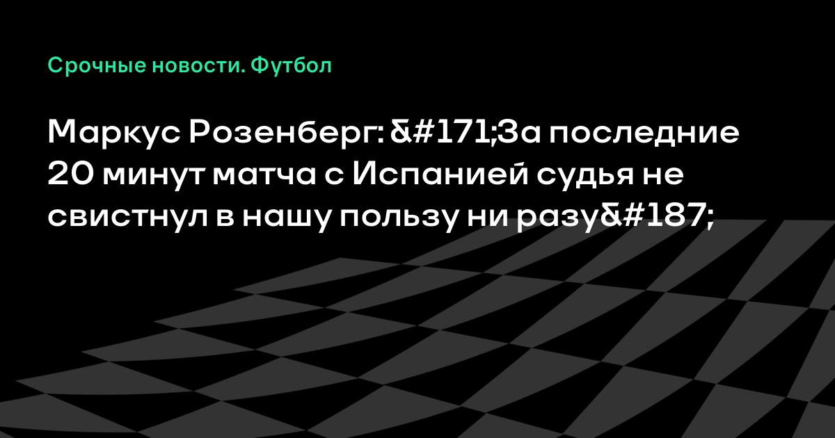 Маркус Розенберг: «За последние 20 минут матча с Испанией судья не свистнул в нашу пользу ни разу»