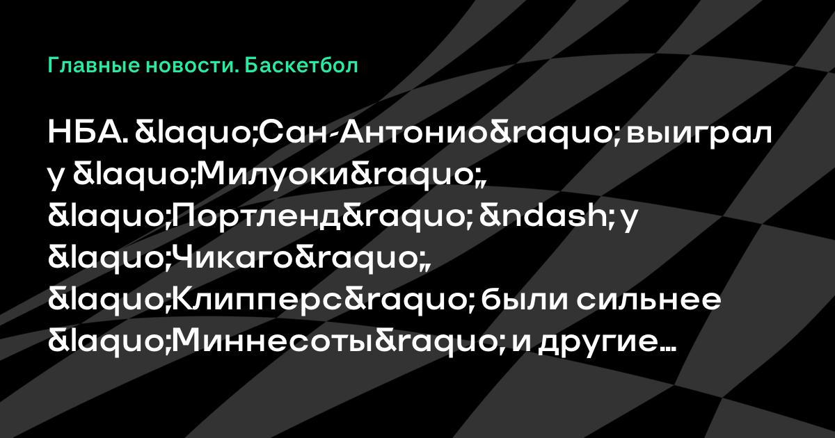 НБА. «Сан-Антонио» выиграл у «Милуоки», «Портленд» – у «Чикаго», «Клипперс» были сильнее «Миннесоты» и другие результаты