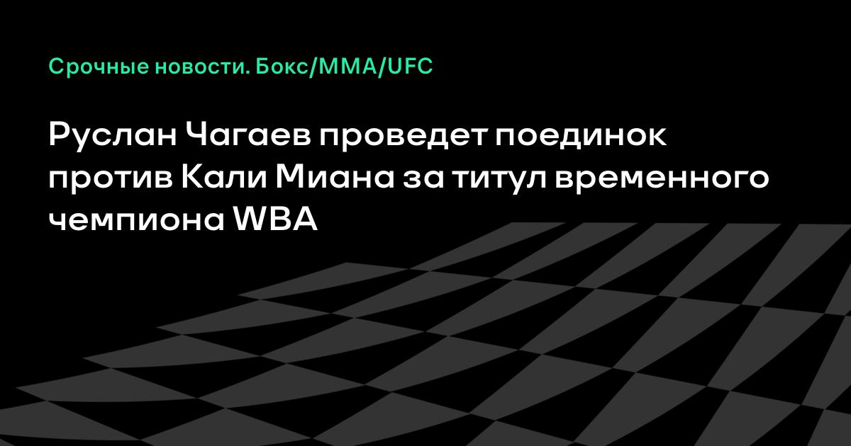 На прошедшем недавно очередном конгрессе WBA в Меделлине (Колумбия) было принято решение о проведении поединка за титул временного чемпиона мира в супертяжелом весе по этой версии между австралийцем Кали Мианом, занимающим первую строчку рейтинга, и экс-чемпионом мира Русланом Чагаевым. Также WBA обязала победителя поединка Хэй Руис встретиться с победителем боя Чагаев Миан. Миан заявил, что выражает благодарность своему промоутеру Дону Кингу, и добавил, что сделает все, чтобы стать полноправным чемпионом мира в супертяжеломом весе по версии WBA.