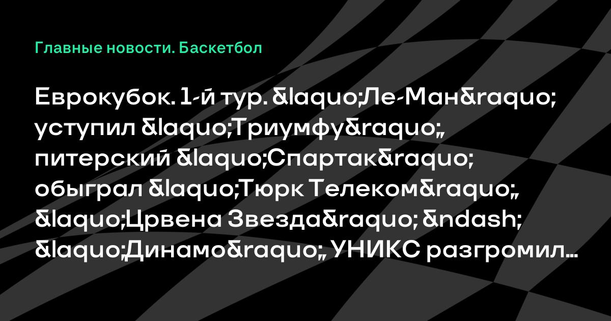 Еврокубок. 1-й тур. «Ле-Ман» уступил «Триумфу», питерский «Спартак» обыграл «Тюрк Телеком», «Црвена Звезда» – «Динамо», УНИКС разгромил «Бешикташ» и другие результаты
